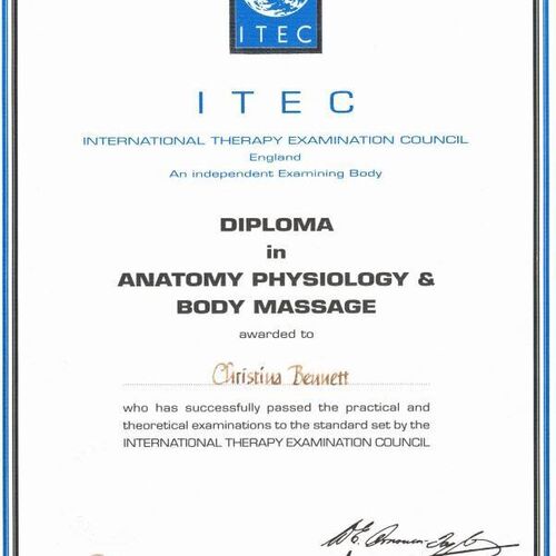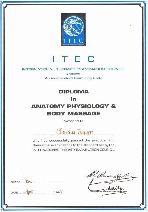 ITEC - Diploma in Anatomy Physiology& Body Massage - 1997 ITEC - Diploma in Anatomy Physiology& Body Massage - 1997