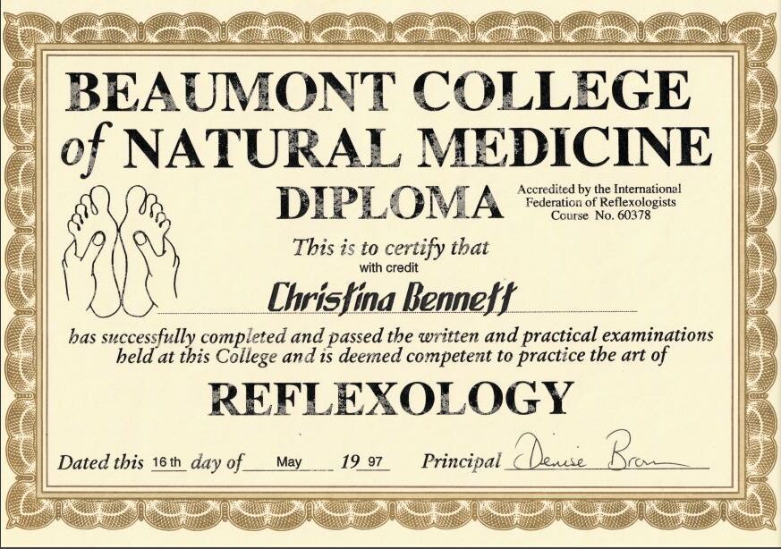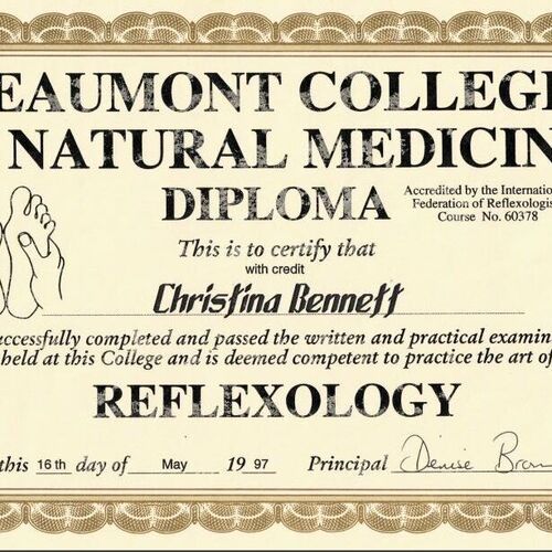 Natural Medicine Diploma - Reflexology - 1997