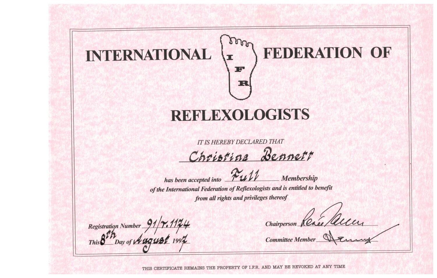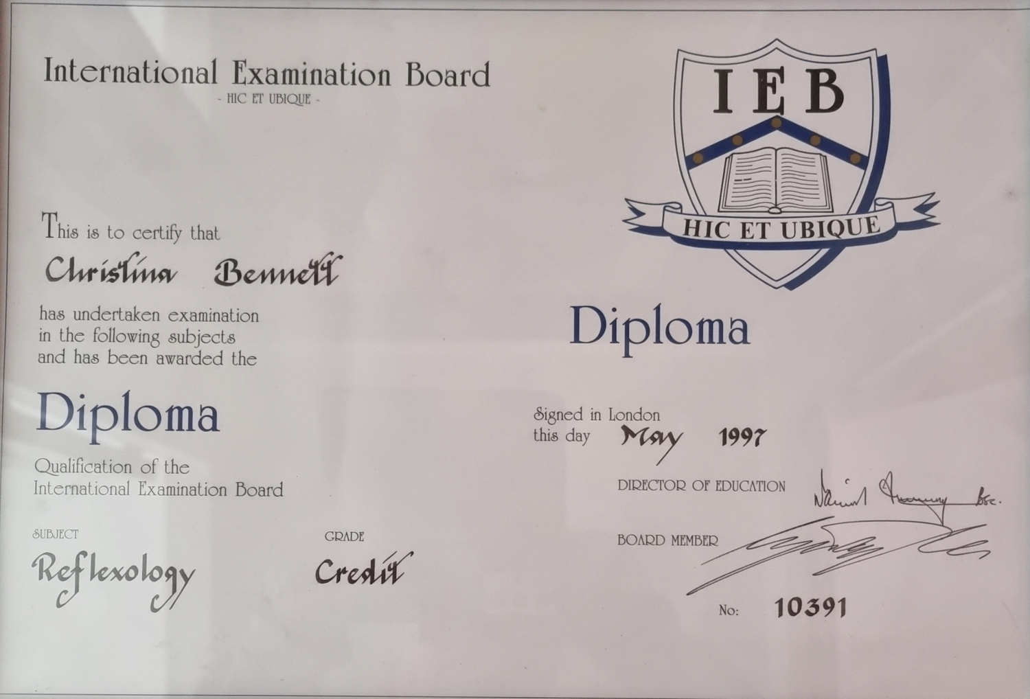 IEB Diploma in Reflexology - 1997