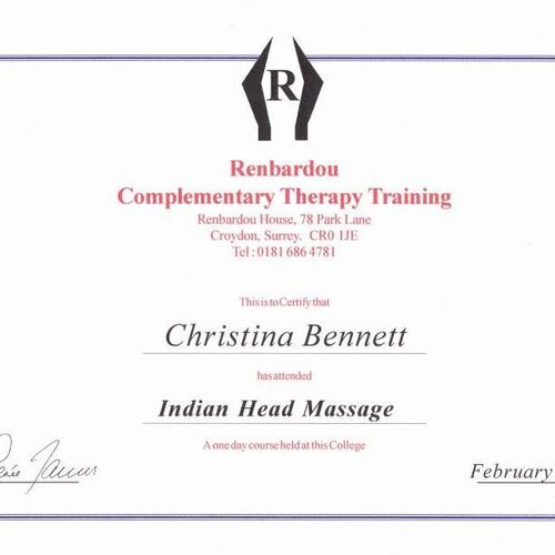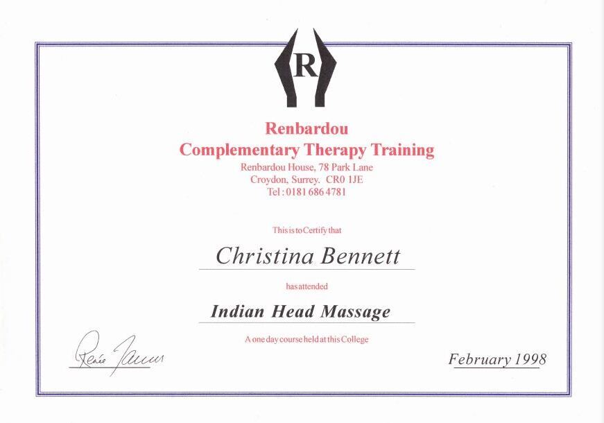 Complementary Therapy - Indian Head Massage - 1998